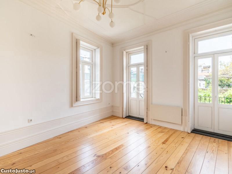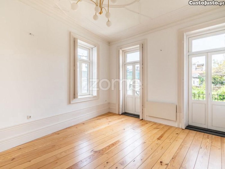 Com 66,4 m² de área interior, o imóvel distingue-se pela preservação dos seus elementos mais nobres: tetos trabalhados com ornamentos em gesso, sancas elegantes, rodapés altos e carpintarias desenhadas à medida, evocando a linguagem arquitetónica original.