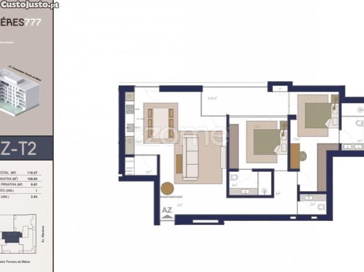 Apartamento T2 NOVO, sito no Empreendimento Menéres 777, na Avenida Menéres, em Matosinhos, com as seguintes características: