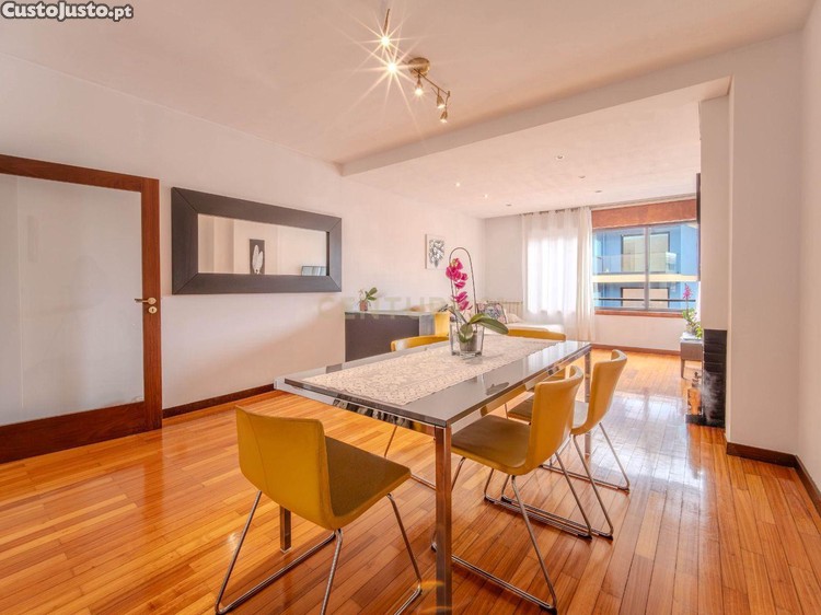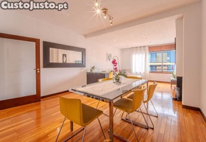 Luminoso apartamento T2 com 105 m2, elevador, duas casas de banho, sala ampla, lavandaria, garagem e arrumo.