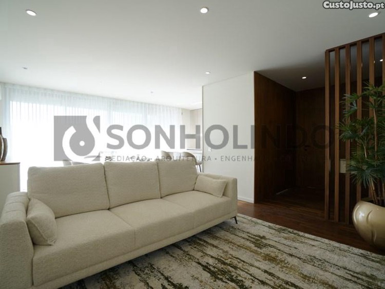 Acabamentos de qualidade superior, carpintaria com portas até ao tecto, sendo na zona íntima lacada a branco e na zona social em nogueira.