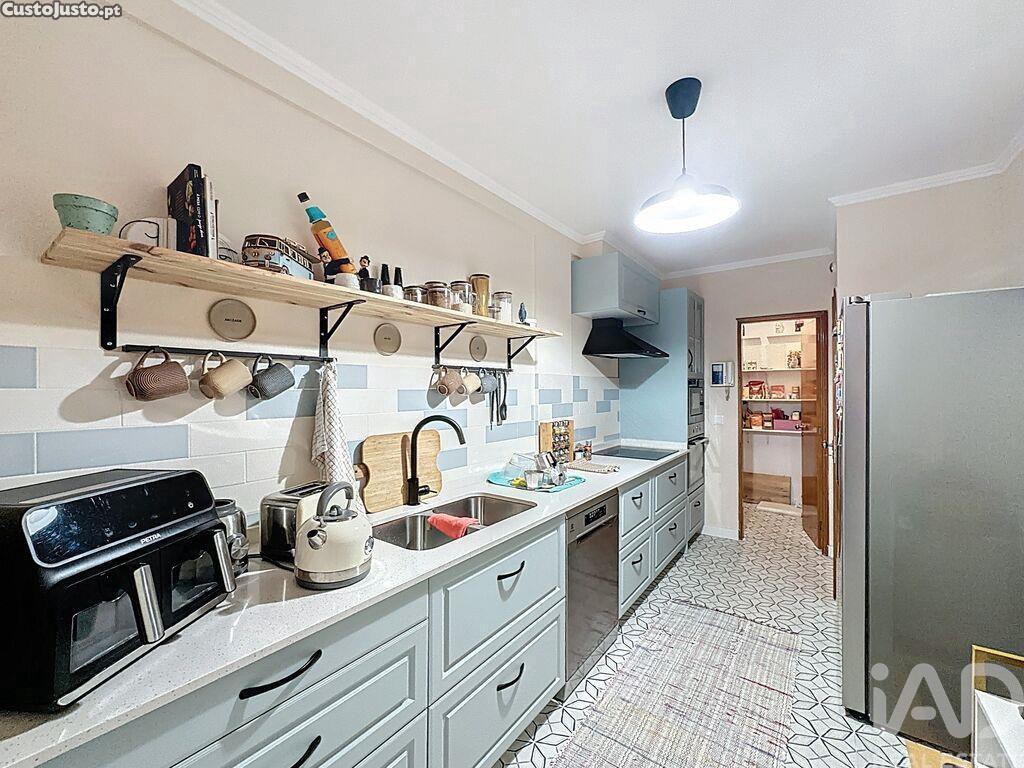 A cozinha, com aproximadamente 11 m², encontra-se totalmente equipada e dispõe ainda de despensa, garantindo funcionalidade, praticidade e arrumação extra.