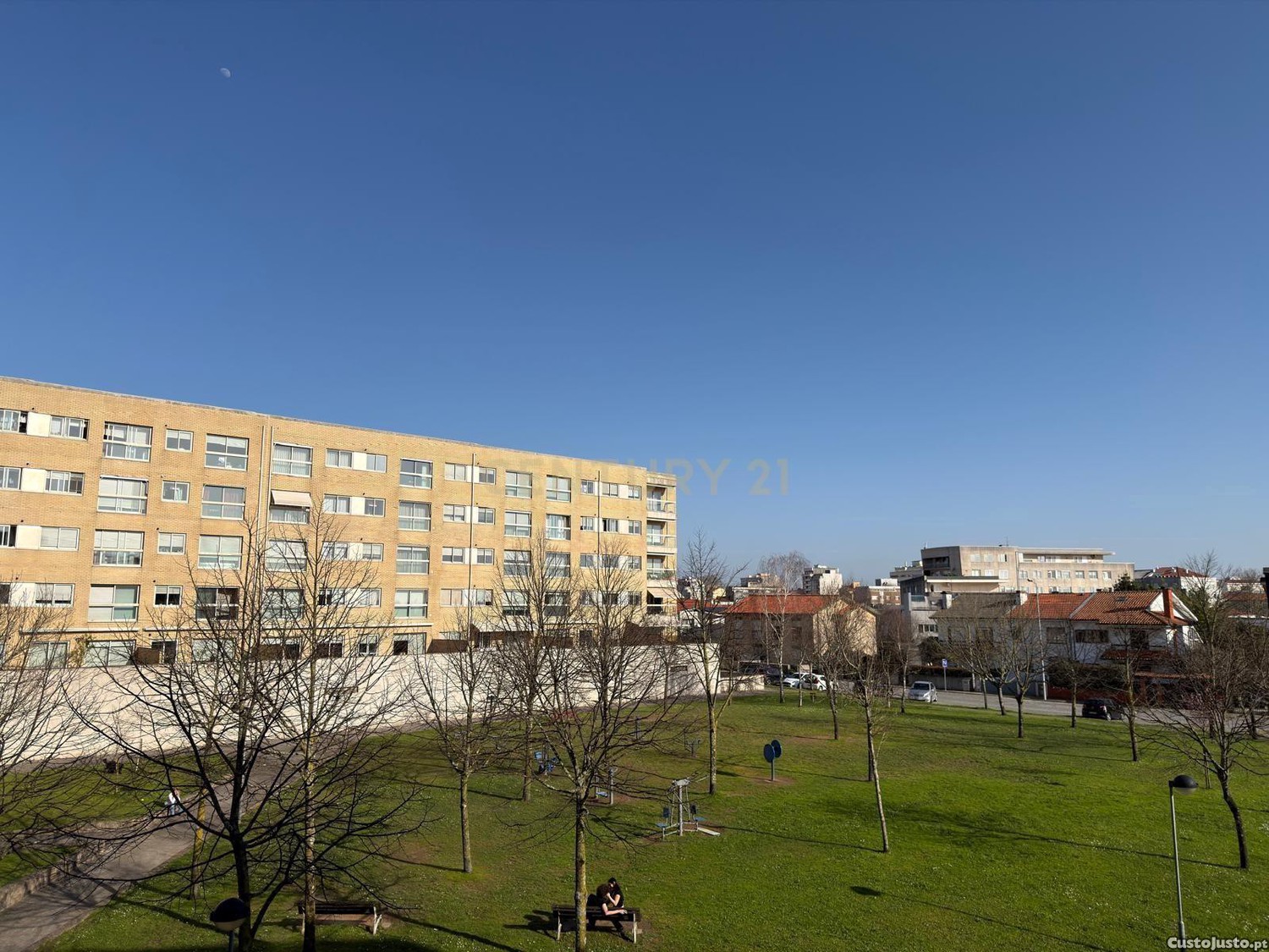- Parque exterior jardim com parque infantil, máquinas exercício físico e extenso relvado.