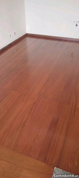 Chão em soalho e tetos falsos com focos.