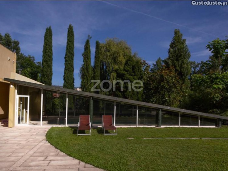 - Piso 0: hall de entrada, salão de estar, cozinha com sala independente para refeições, sala de jantar, suite, quarto, casa de banho de serviço, corredor desafogado com vitrais virados para o exterior e piscina climatizada