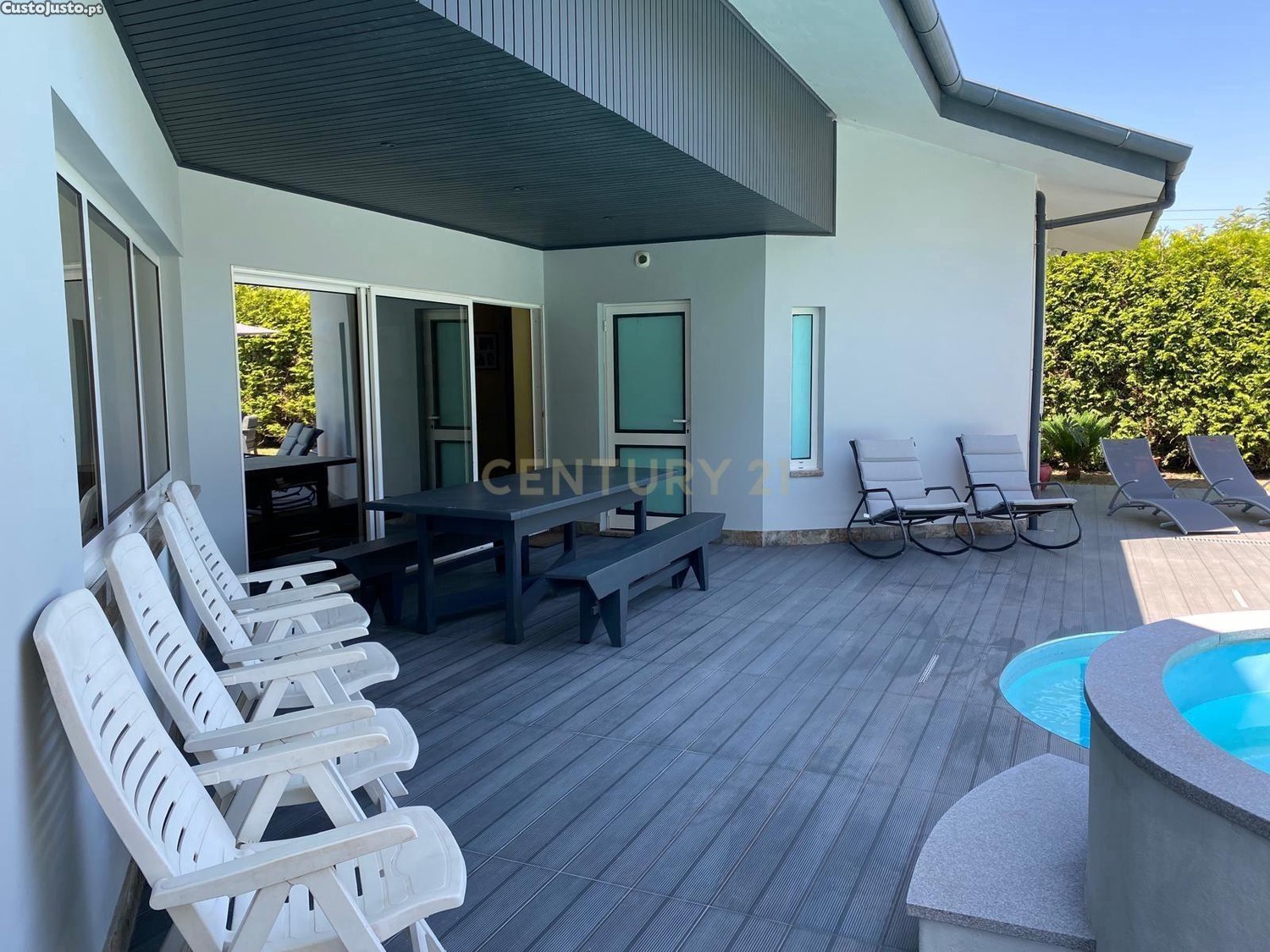 - Sala de estar e sala de jantar com áreas generosas, ligadas a uma zona de bar com acesso direto á Piscina. Uma zona social com 100m².