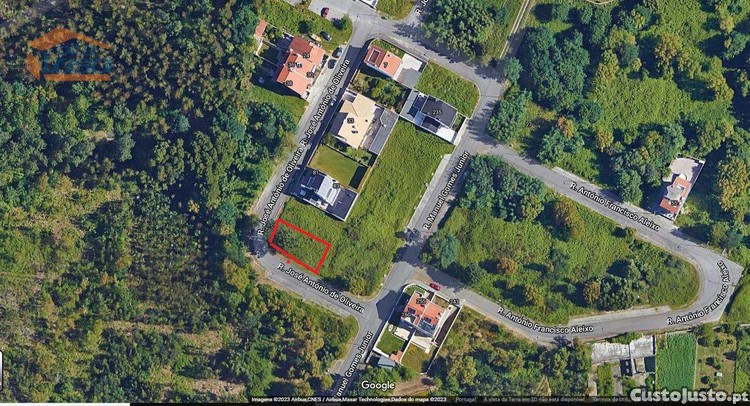 Aprovada para construção de moradia de três frentes, de r/c, andar e aproveitamento do vão do telhado, possibilidade de cave.