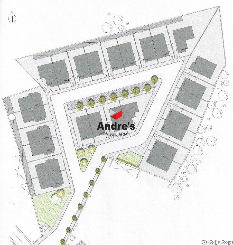 - Está inserido num loteamento que prevê a construção de moradias de 3 pisos (Cave, R c e 1º).