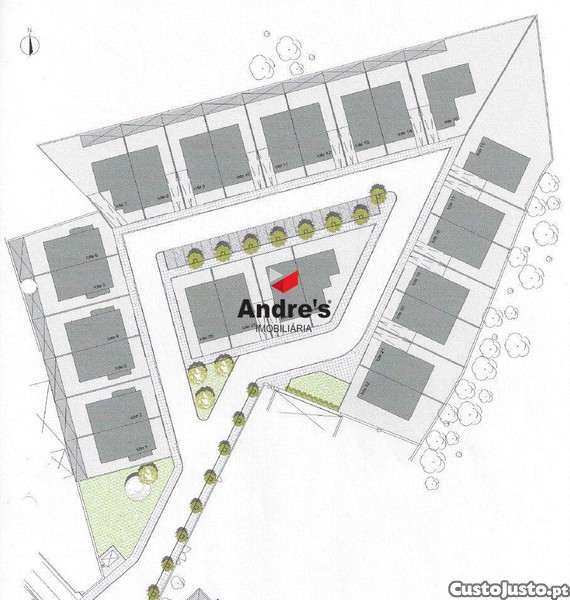 - Está inserido num loteamento que prevê a construção de moradias de 3 pisos (Cave, R c e 1º).