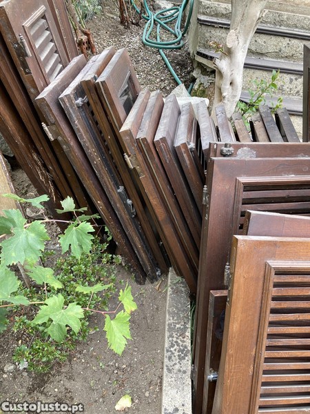 Vendem-se janelas com portadas e 1 porta em madeira, todas com caixilhos incluídos.