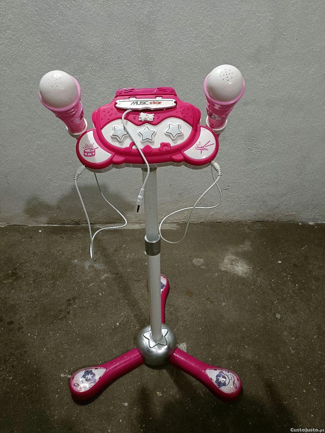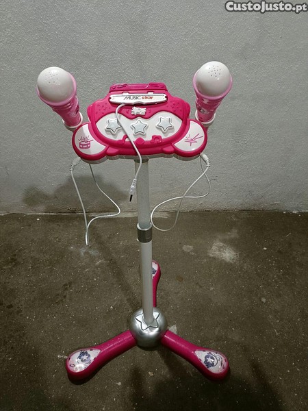 Preço: 15 €Microfones com tripé com luzes, coluna e diversos sons de música, criança menina rosa