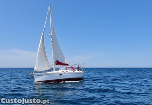 Veleiro do ano 2000 em excelente estado de conservação, pronto a navegar de imediato. Embarcação muito bem estimada, com manutenção regular e todos os sistemas a funcionar perfeitamente. Tem 2 cabines, wc, cozinha equipada com forno e fogão , para 8 pessoas, 6 camas, balsa vistoriada para 8 pessoas, motor Yanmar 30 CV com menos de 700 horas de uso
