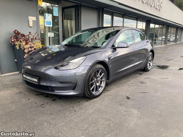 TESLA Model 3 Long Range Sedan 100% elétrico, potente, seguro e tecnológico. Modelo 2022, cinzento, 4 portas, 5 lugares, dois motores elétricos com 498cv, caixa automática de 1 velocidade, tração integral. Autonomia: 602 km. Consumo médio: 14,7 kWh/100km. Capacidade da bateria: 75 kWh (lítio). Emissões CO2: 0 g/km.