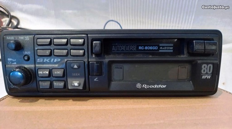 Rádio dos anos 90 do séc. passado. Com leitor de cassettes com autoreverse. Painel de botões é amovível. Em boa condição estética geral. O rádio está a funcionar regular e normalmente, muito embora a luz do display nem sempre acenda; o leitor de cassettes não dá som.