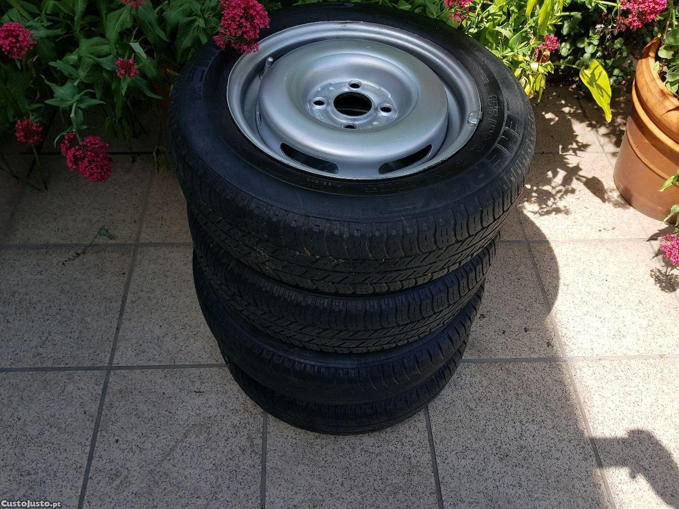 vando 4 jantes r13 com 4 tampas e 4 pneus 2 bons 2 usados sem empenos nem marcas..