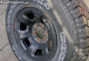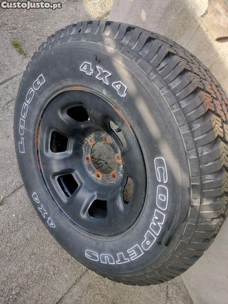 Pneu novo com jante de ferro. Medida 265/70 R16. Modelo Lassa Competus 112s. Piso misto, para jipes e carrinhas. Estava como suplente.