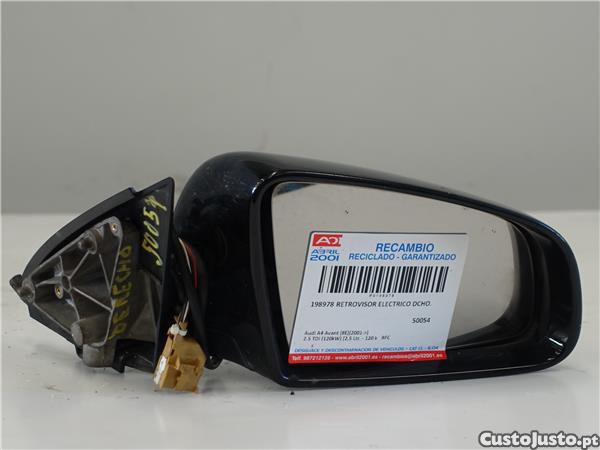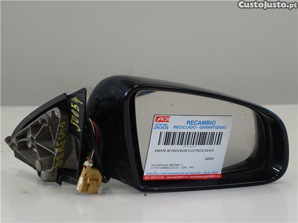 Número da peça 198978. Retrovisor elétrico direito Audi A4 Avant (8E)(2001->) 2.5 TDI (120kW) [2,5 Ltr. - 120 kW V6 24V TDI]. Código do motor: BFC. Ano: 2003. Quilômetros: 246200. Cor: NEGRO. Observações: .. GARANTIA E DEVOLUÇÃO DA ORIGEM DA PEÇA. Ao nos ligar explicaremos as garantias contra qualquer reclamação e envio com a logística mais avançada. Temos 4 entregas diárias de acordo com as populações e num máximo de 24 horas.