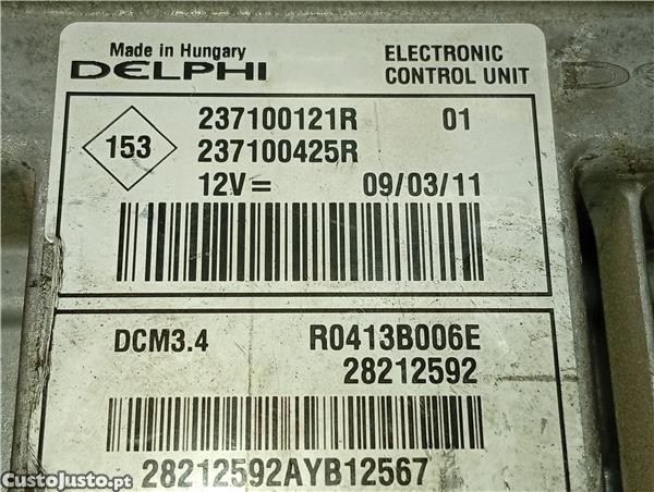 Número da peça 100967. Unidade de controlo Renault Megane III Berlina 5P (2008-) 1.5 Authentique [1,5 Ltr. - 66 kW dCi Diesel FAP]. Ano: 2011. Cor: PLATA. Referência Original: 237100121R. Referência Equivalente: 237100425R. Observações: . CV24-600.1