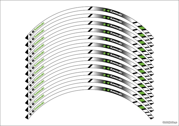 Preço: 25 €Fitas kawasaki autocolantes para jantes roda aro 17 em vinil laminado de alta qualidade