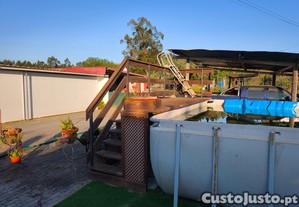 Estrutura em madeira tratada para entrar sair da piscina