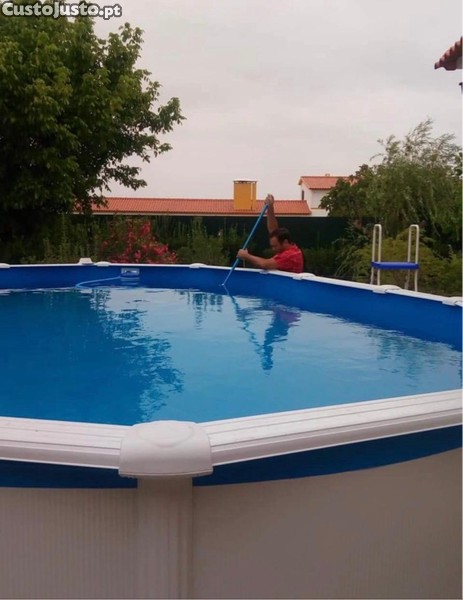 Vendo piscina Gre Elevada com 6,10 por 3,75 oval com 1,32 de profundidade, com uma bomba a trabalhar e outra completa dentro da caixa nova com balão, um skimer novo colocado no verão e outro completo ainda embalado , com escada e o material todo para limpeza e aspiração, só necessita de um novo liner