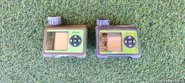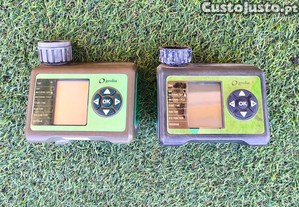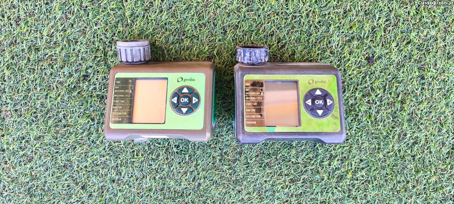 Dois programadores de irrigação GEOLIA para controlar e optimizar a rega do jardim. Com funções avançadas e fácil de usar, permitem programar e monitorizar a irrigação de forma eficiente.