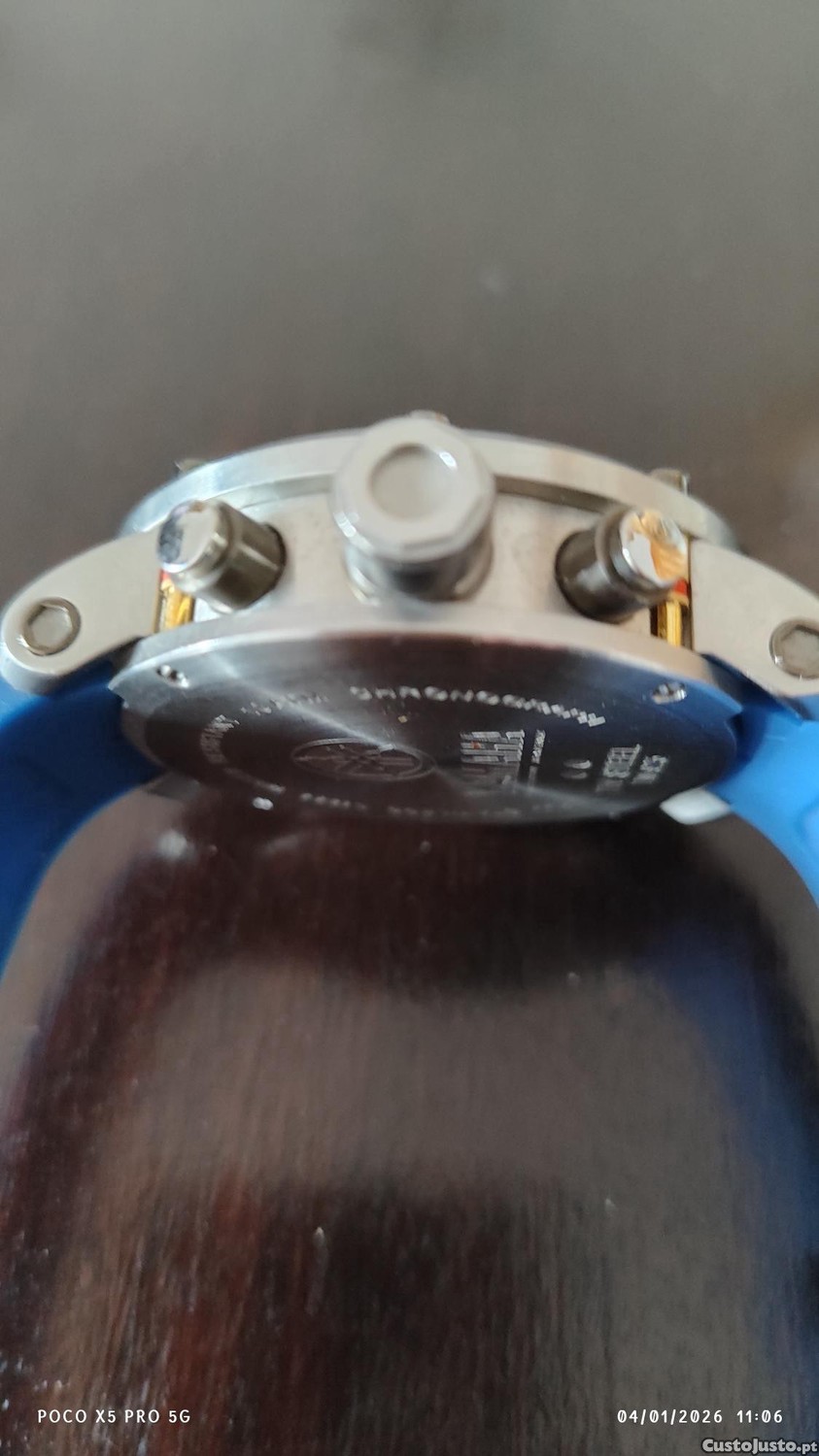 Relógio em estado novo, com caixa e documentos.
