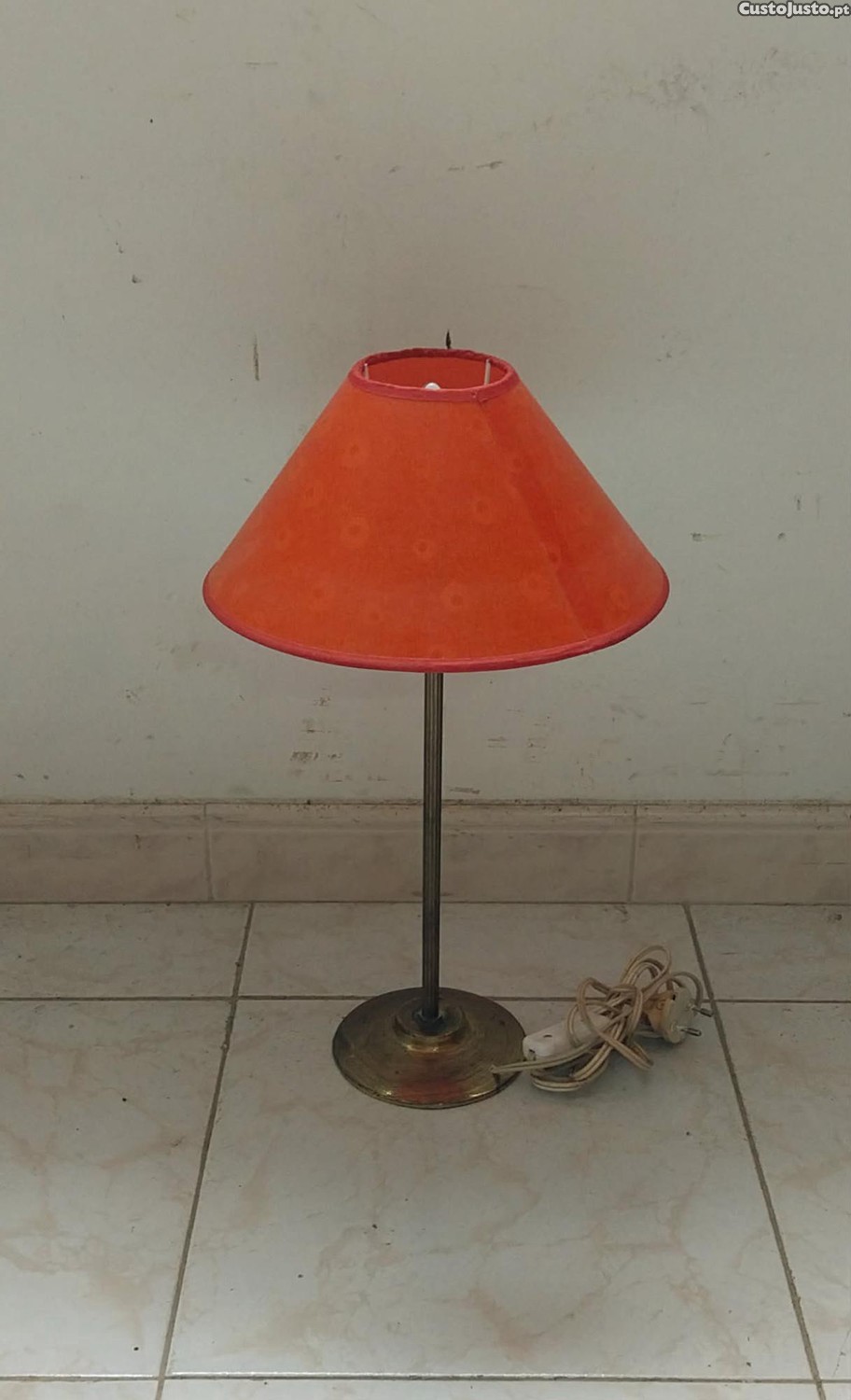 Preço: 9 €Antigo Candeeiro em Latão com Abajur, a Funcionar. Vintage!