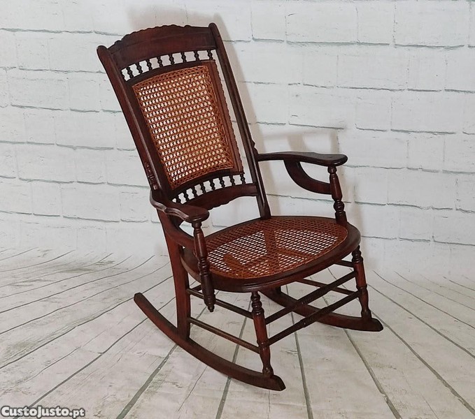 Cadeira de baloiço clássica séc. XIX madeira cerejeira