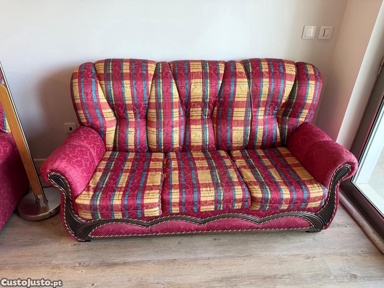 Preço: 450 €Conjunto de 2 sofás individuais e 1 sofá cama de 3 lugares com padrão country chic xadrez