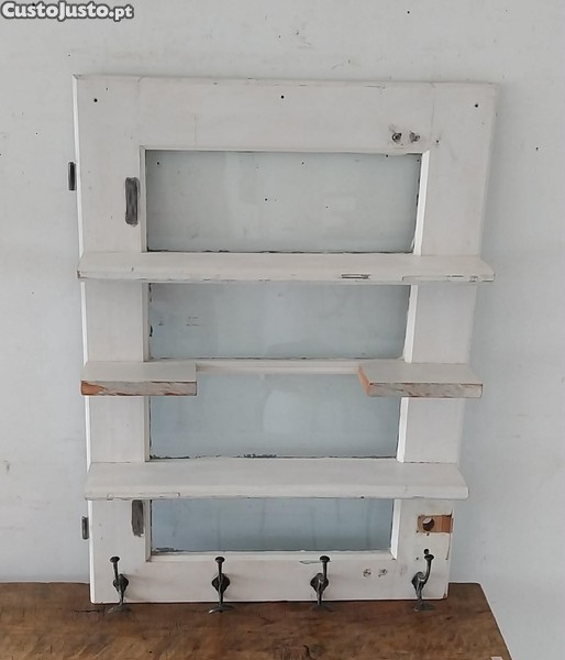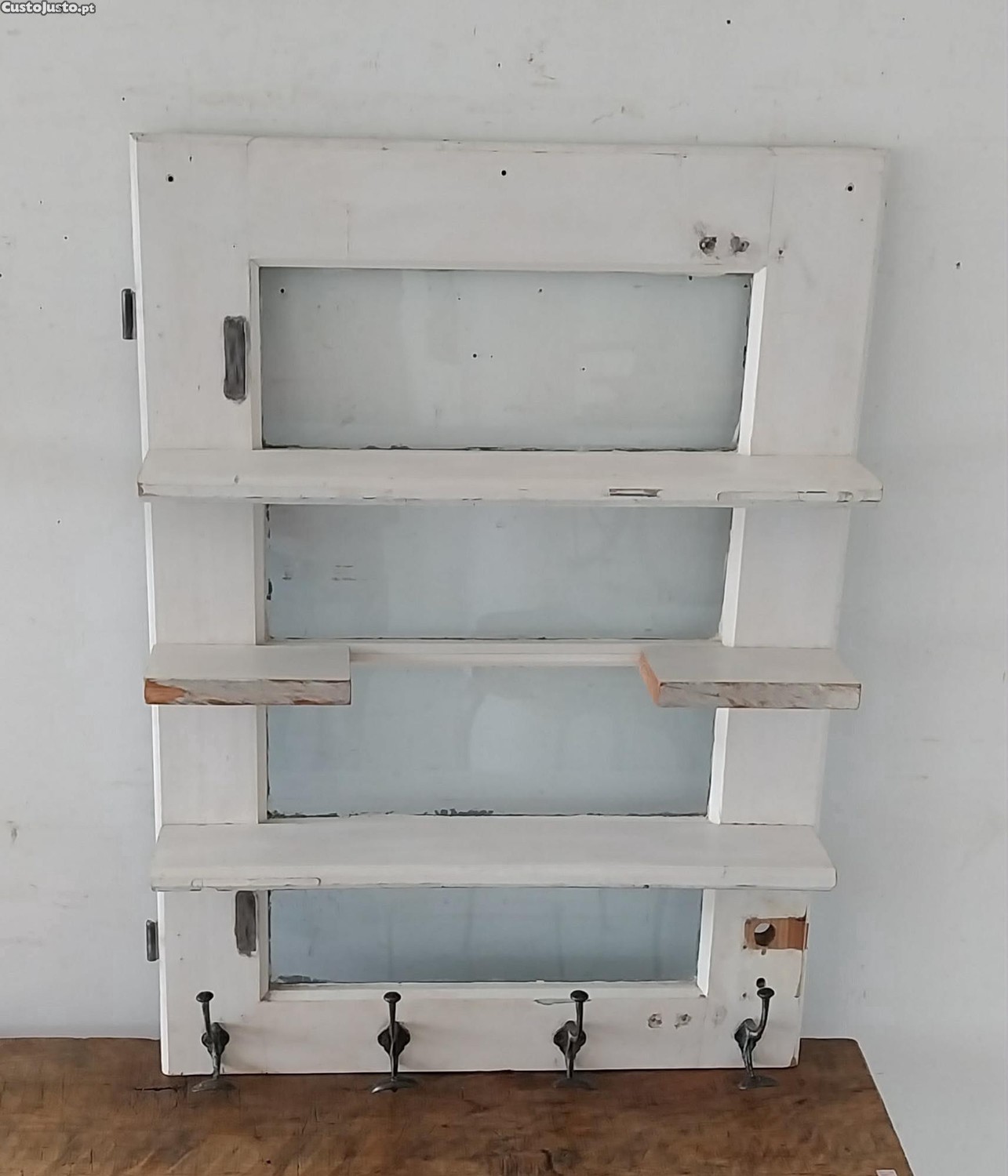 Prateleira de Parede / Expositor, com 4 Cabides Antigos em Ferro Fundido, Originais. "Restaurada"