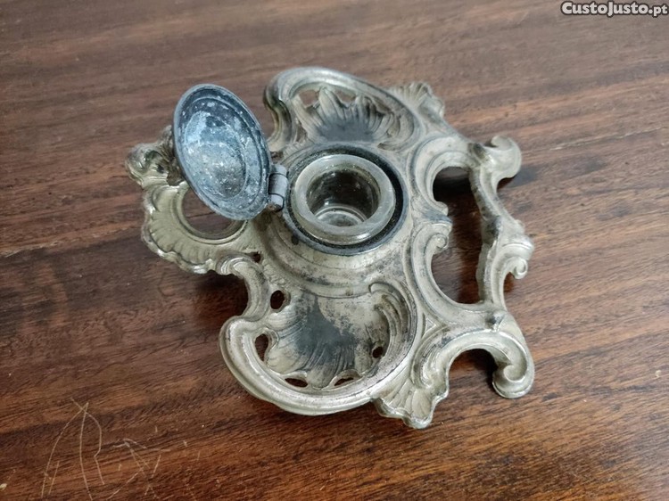 Antigo tinteiro de caneta em metal vasado