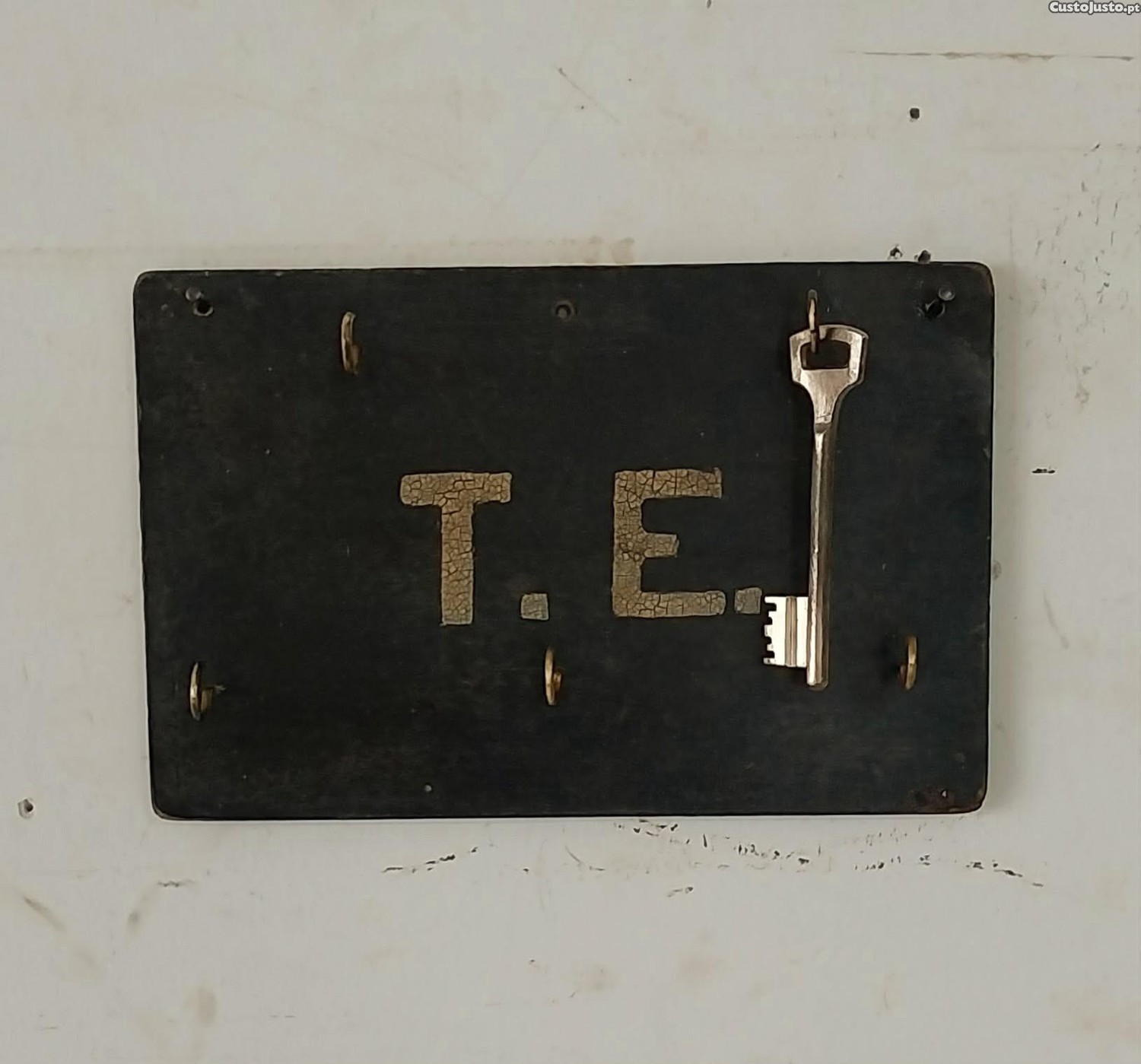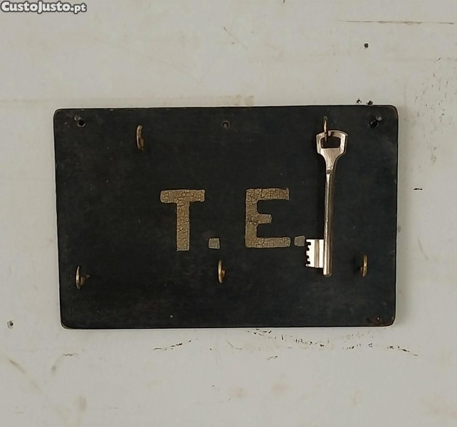Preço: 12 €Chaveiro / Porta-Chaves de parede Vintage, com as iniciais "T.E." com 5 suportes em Latão