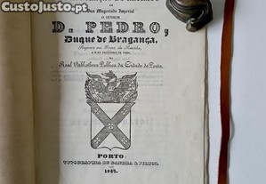 Opúsculo contendo a oração de elogio na cerimónia de inauguração do retrato de D. Pedro IV de Portugal, figura central do liberalismo português.