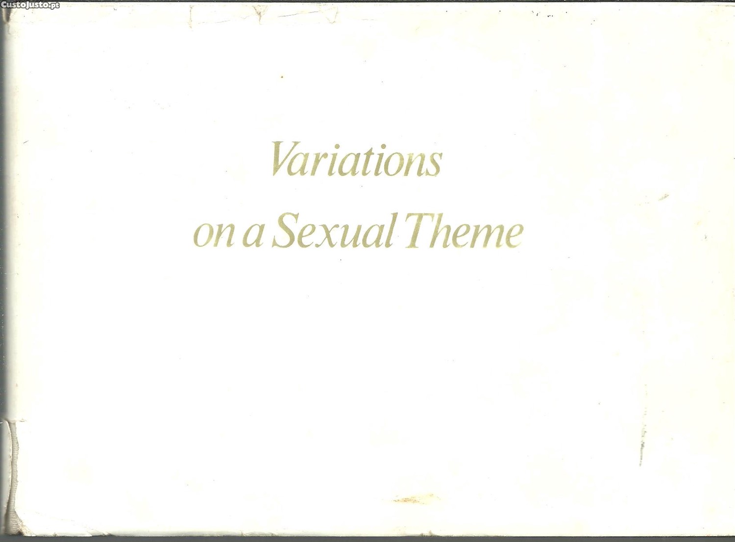 VARIATIONS ON A SEXUAL THEME. *** Terence Hendrickson *** London: The Julian Press, [Sem ind. de ano: provavelmente do final da década de 1960]. (15 x 21 cm.) com 31 + [1] + [80] pp. Com muitas ilustrações a p/b.. Capa dura em tecido branco com gravações douradas na lombada e com sobrecapa de papel. Exemplar razoável. Sobrecapa com evidentes marcas de manuseamento, algumas manchas (visíveis sobretudo no lado de dentro), vincos e um pouco gasta e danificada nas margens e na lombada, onde apresenta vários rasgões. Capa dura com pequenas marcas de uso e manchas ligeiras, mas encontrando-se ainda, de um modo geral, em boas condições. Páginas globalmente bem conservadas e limpas, apresentando apenas um ligeiro amarelecimento e algumas manchas ténues, tudo devido essencialmente à passagem do tempo. *** Presumível primeira edição deste livro que se constitui como uma espécie de breve manual da sexualidade humana, primacialmente destinado aos casais, e procurando fornecer pistas e sugestões para uma vida sexual mais feliz e plena, que contrarie a rotina e mesmo certas inibições. («This book is not intended as a bedside manual on exotic techniques of lovemaking, but rather as a guide to the means whereby man and wife may, by seeking change and variation in their sexual lives, find geater understanding and happinesss.») A maioria do livro é constituída por imagens fotográficas que retratam "algumas variações sobre as posições básicas para a relação sexual" e que são descritas no verso. (Índice na imagem 8). Impresso em bom papel. Texto em inglês. *** Portes: envio gratuito em correio normal (tarifa especial para livros) * envio em correio registado: 1,70
