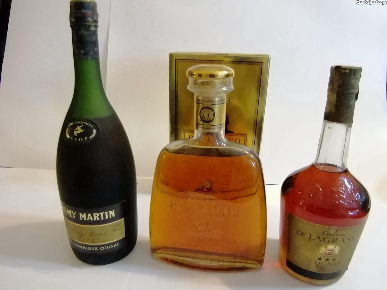 Preço: 135 €3 garrafas de COGNAC: Rémy Martin Fine Champagne Cognac (1L), Beaufond XO, Gaston de Lagrange