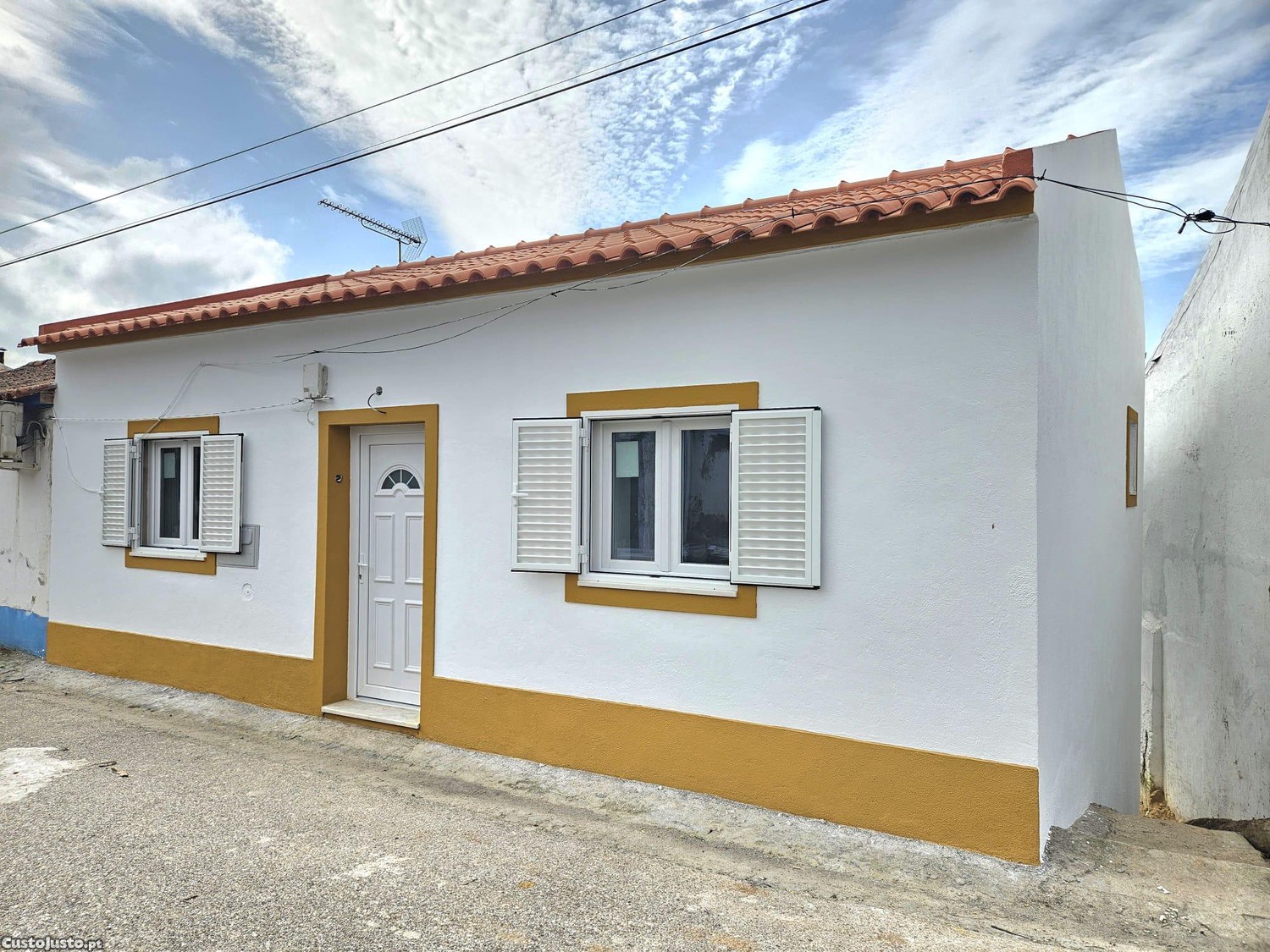 Moradia de tipologia T2+1, totalmente renovada, com dois pisos, r/c e cave. Fachada com porta de Rua Principal e dois vãos de janelas fechados com caixilharia oscilo-batente.