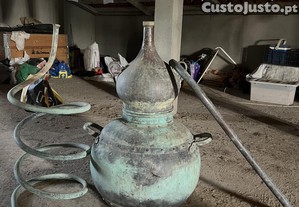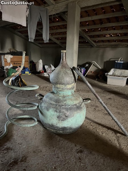 Vende-se alambique antigo, completo e em bom estado de conservação, com todas as peças necessárias ao seu funcionamento. Trata-se de um equipamento tradicional, adequado para quem pretende utilizá-lo para destilação, bem como para coleção ou decoração em espaços rústicos, adegas, quintas ou turismo rural.