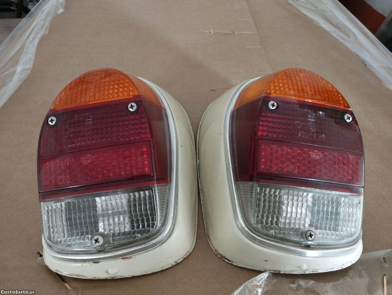 Farolins traseiros originais Hella retirados de VW carocha há muitos anos e grelhas por trás dos vidros laterais traseiros. Entrego em mão ou envio pela GLS, portes incluídos.