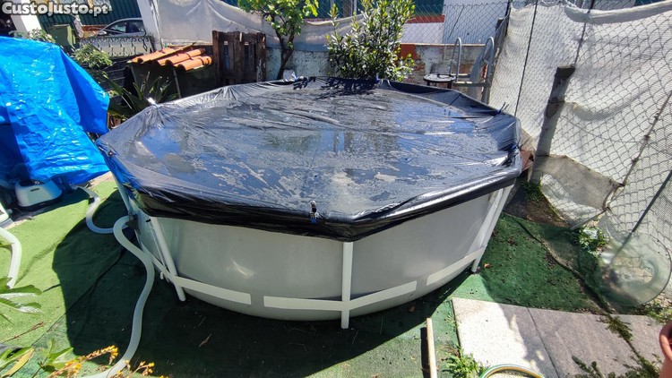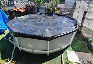 Piscina desmontável Prism Frame estruturas metálicas com tratamento anti-corrosão e lona de três camadas ,completa com filtro de areia,salinizador INTEX vai com mangueiras ,capa e escada e 10kg de Sal, medidas 305 por 80cm altura 4485L de água