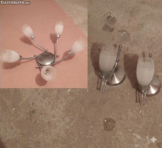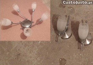 Conjunto de Iluminação Completo: Candeeiro de Teto + 2 Apliques de Parede