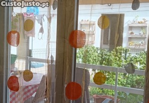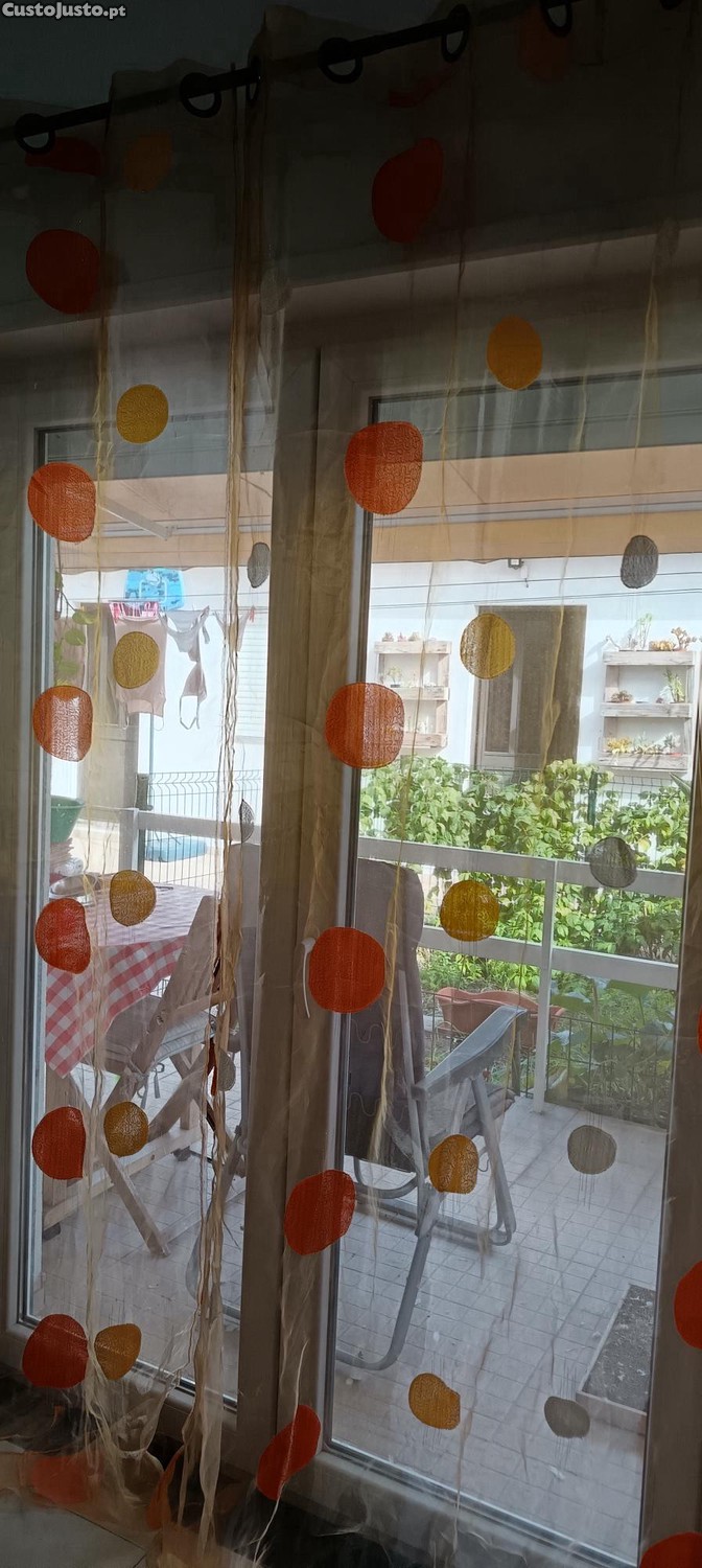 Preço: 5 €Dois cortinados em tons de cor de laranja