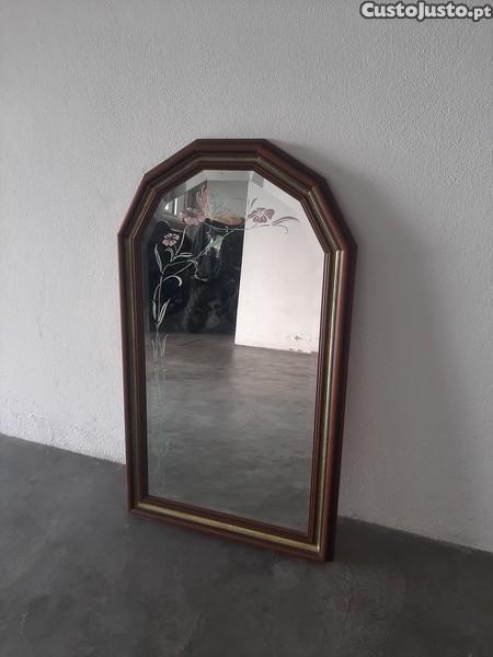 Espelho de Madeira de Nogueira com Pintura