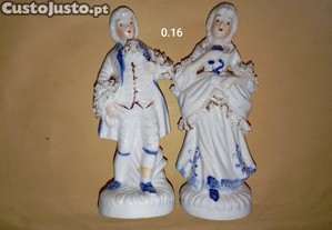 Estatuetas de Porcelana Par Fidalgo e Dama (16 cm) Pintadas à Mão