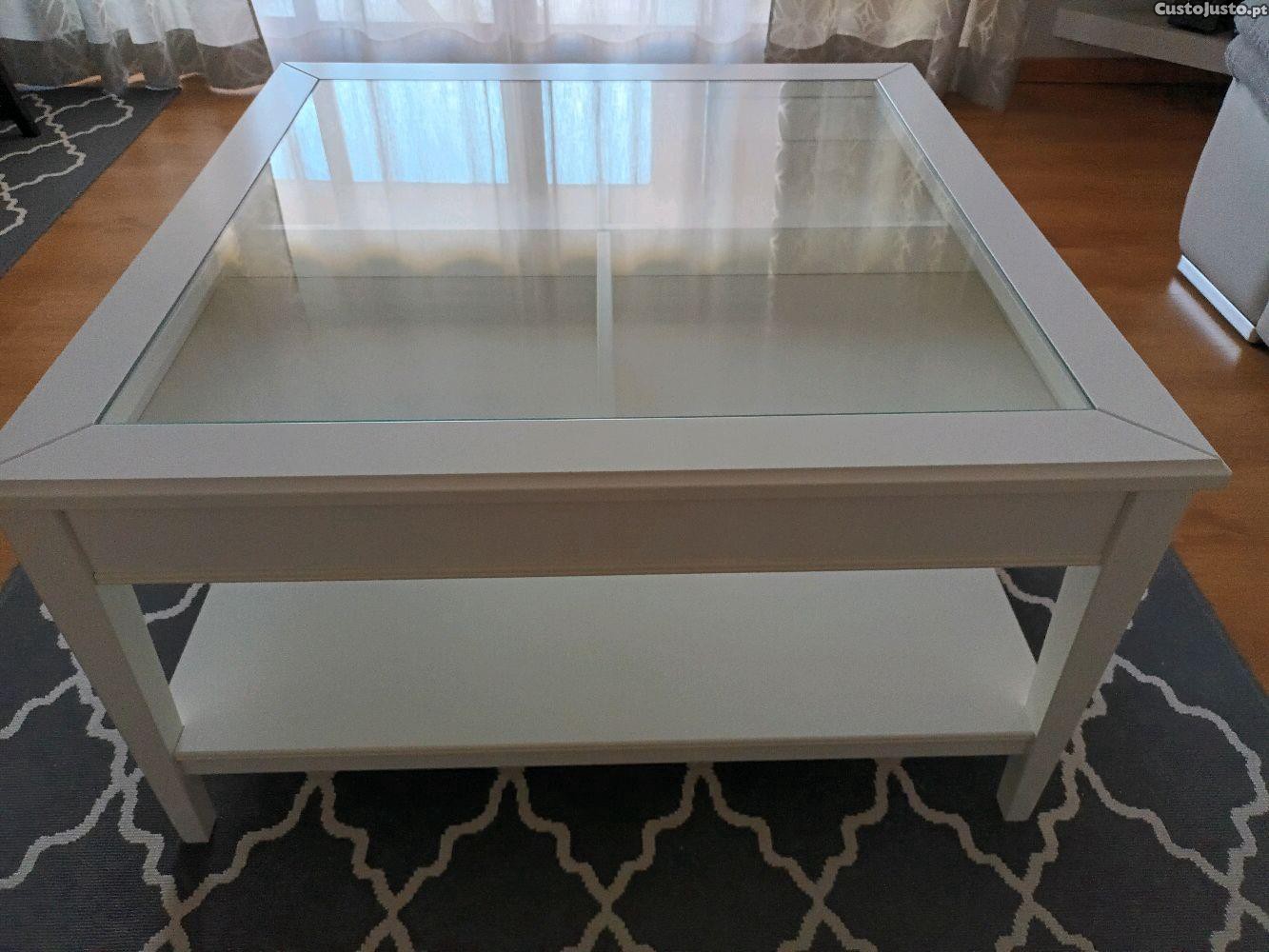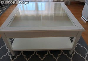 Mesa de centro branca Liatorp, com vidro no topo.