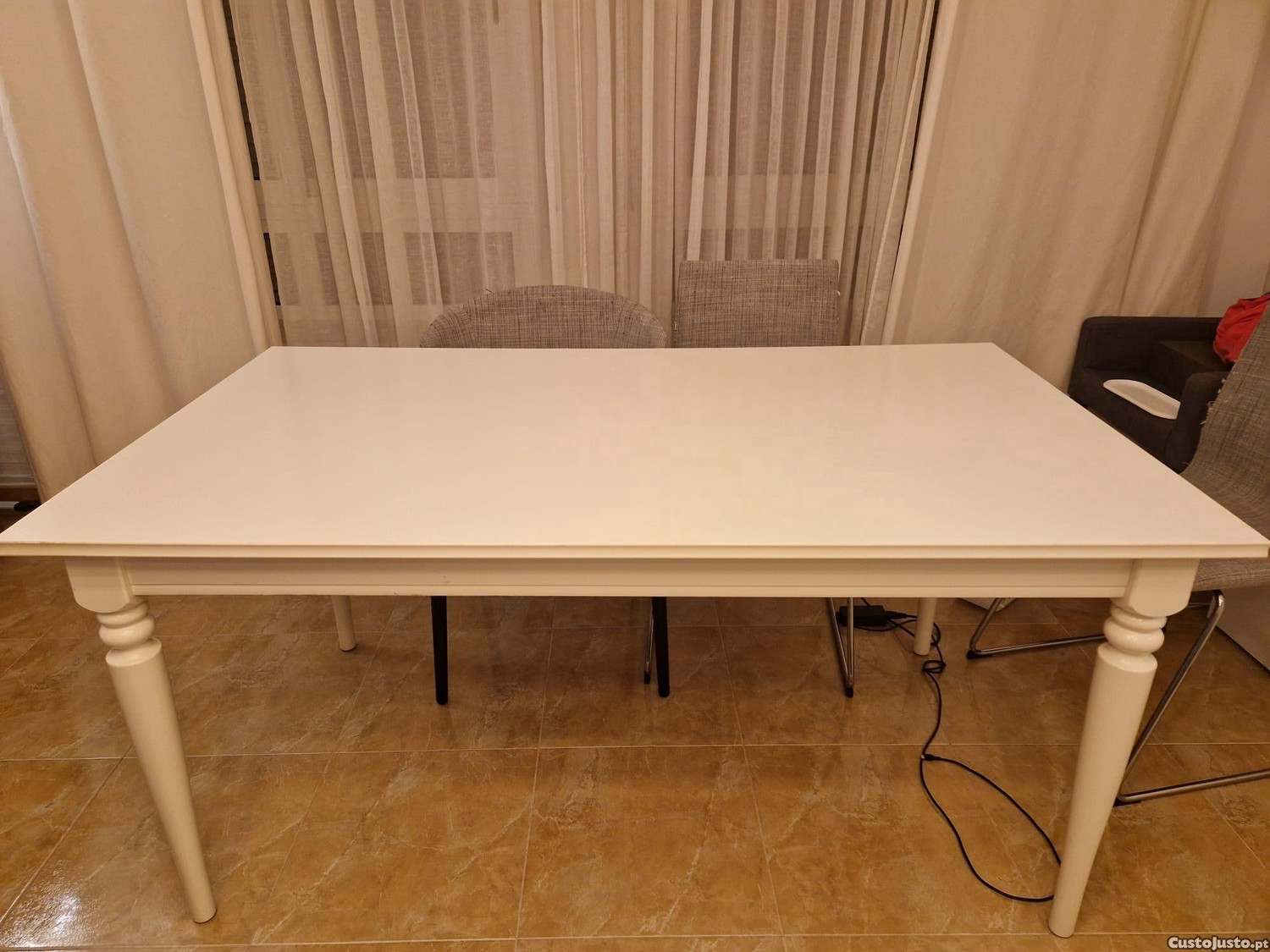 Mesa usada, com pequenas marcas de uso, mas nada danificado.