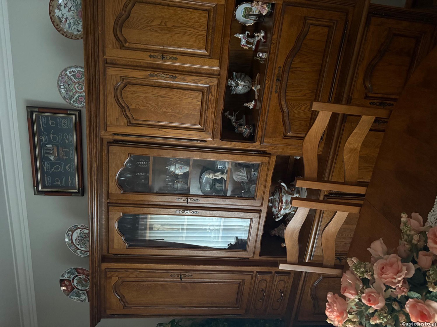 Vendo mobila de sala de jantar em madeira constituída por un grande novéis do uma mesa e seis cadeiras duma mesa em Almada centro