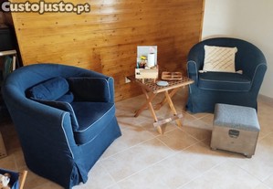 Vendo duas poltronas de tecido de ganga azul.