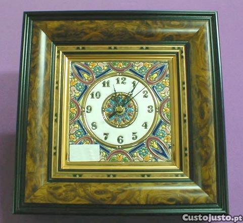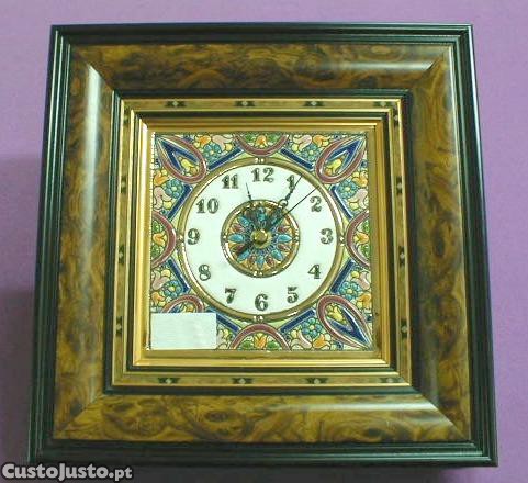 Relógio de madeira e cerâmica 25x25x4cm