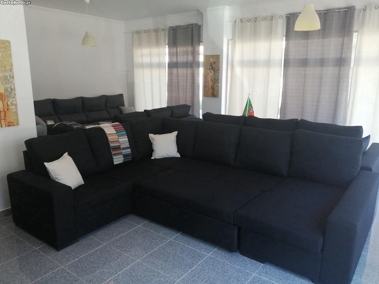 Preço: 650 €Sofá de Canto com Cama e Báu de arrumação - Novo a estrear