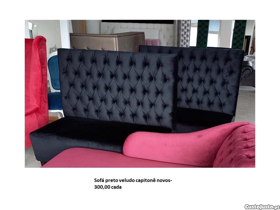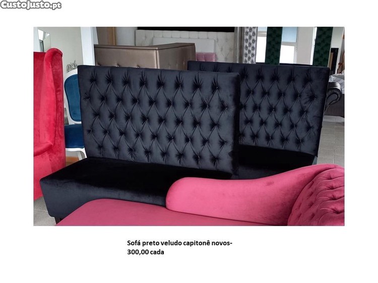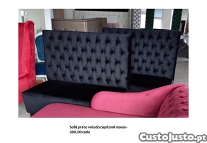 Preço: 150 €Sofá preto de veludo capitonê de costas altas